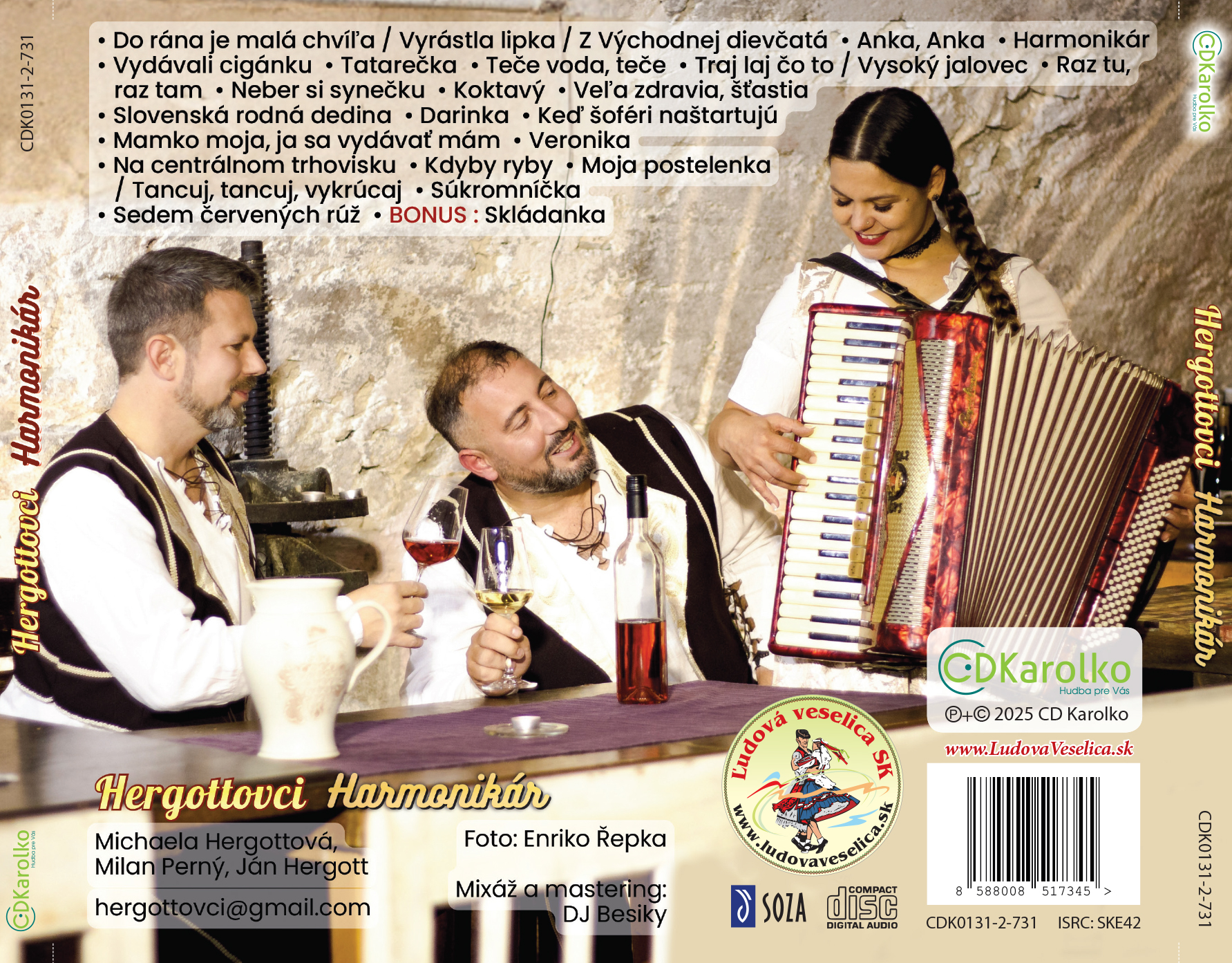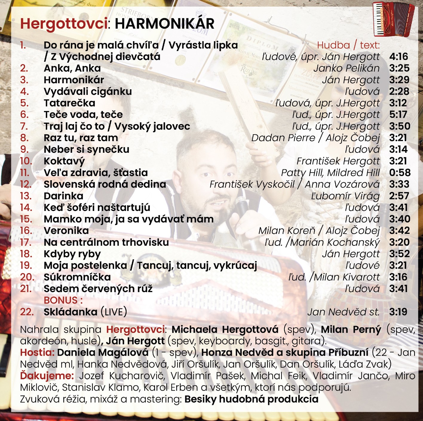 HERGOTTOVCI: Michaela Hergottová (spev), Milan Perný (akordeón, husle, spev), Ján Hergott (keyboardy,bicie, basgitara, gitara, ukulele, kazoo, spev a vokály); František Hergott (ústna harmonika, vokály)